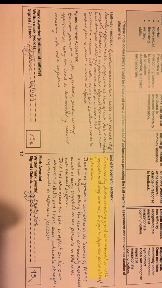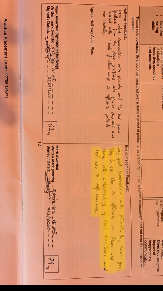 To work effectively with others is highly important in healthcare, and a method that I believe this can be achieved is through communicating effectively (1). I have always felt that I am a chatty and approachable individual but having the confidence and ability to transfer these skills into healthcare was going to be a new challenge. Placements were the first opportunity to really test my ability to communicate with a range of healthcare professionals and patients, where I received some positive feedback (See – Placement 3 Feedback and Placement 4 Feedback), which reported that I was effective at communicating with staff and patients alike, and that I was able to build good working relationships and build strong therapeutic alliance with patients, something that is important for patient-outcomes (2). Communicating effectively is a component I continuously try to progress in a manner of ways, I remember a patient that I saw on my second placement in a community setting that I believed required further input from occupational therapy, therefore, I took it upon myself to liaise with them to discuss problems lists and a referral for occupational therapy to see them (See – Skills Journal: Communication), in addition to working on my ability to communicate effectively through referrals to other healthcare professionals through the use of electronic note writing and electronic referrals (See – Skills Journal: Communication), this is something that I shall continue to take forward, ensuring I use a range of communication strategies to make sure patients get the most effective care. I believe this has demonstrated an ability to facilitate the sharing of information, advice and ideas with a range of people, using a variety of verbal, written and electronically based modalities (3).