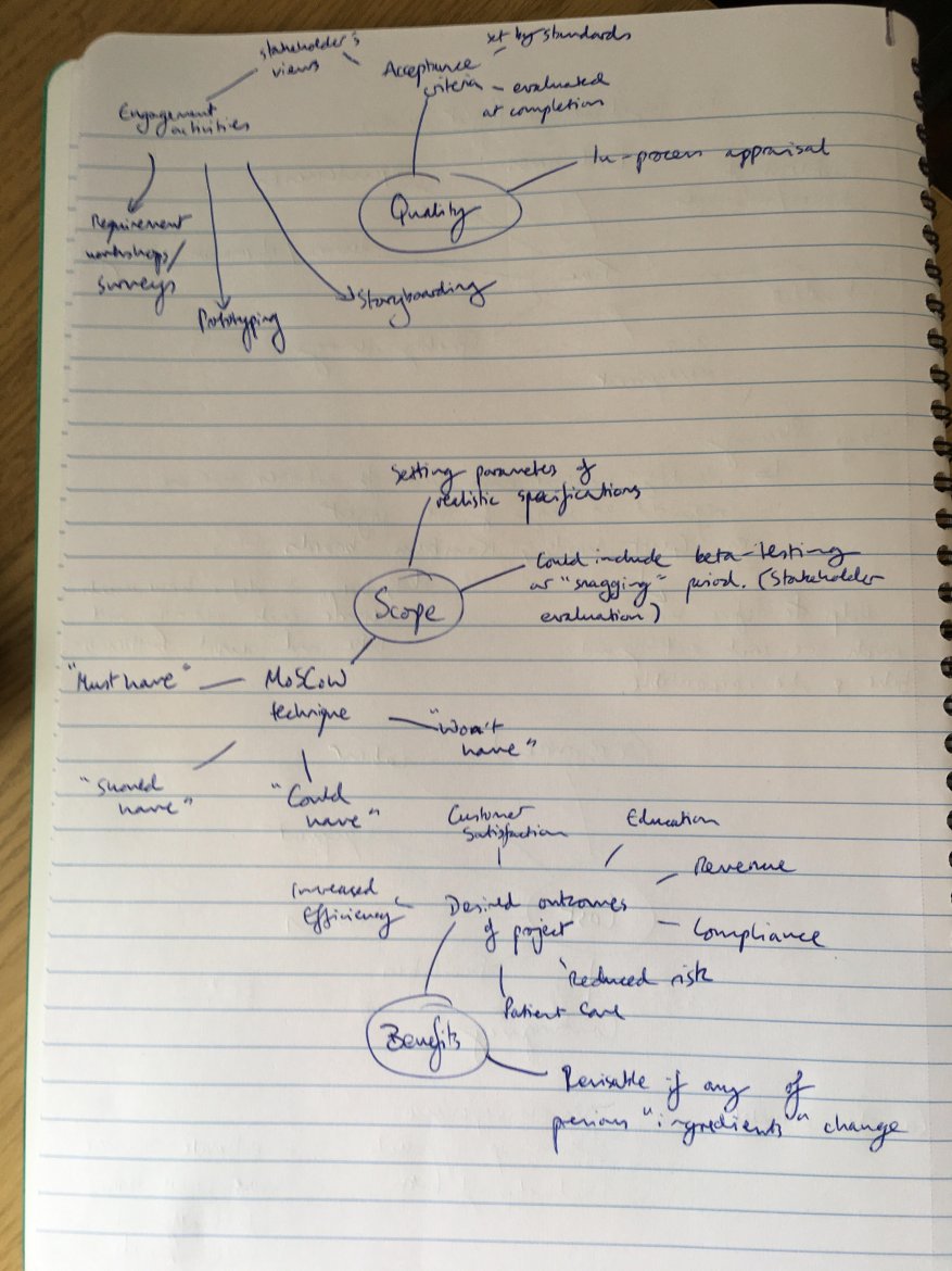 Learning about these project tools, particularly about their theoretical and practical benefits and shortcomings, would be a directly transferrable skill to project management in a healthcare environment. Projects could be "formal", such as audit or service development, or "informal", such as getting through the caseload on the ward. I feel that my ability to communicate, co-ordinate, and delegate workload has improved through reading about these management tools and practicing use of the Gantt chart, but I am aware that I will need to apply this to different contexts in future in order to be able to adjust communication styles efficiently.