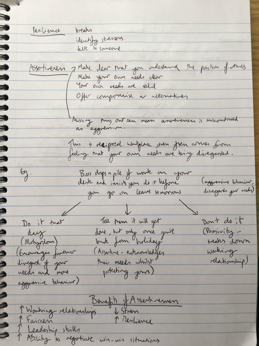 I started reading resources from Mind.org, which helped me to validate that my stress was a result of my needs not being met, and this is a reasonable expectation to have of your workplace. These also signposted me to further resources about helping build resilience, and develop assertiveness in negotiating fair treatment.